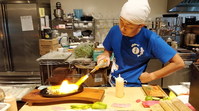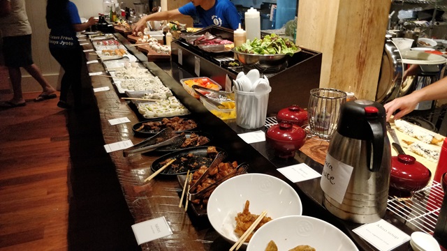 For those who love Toshiya’s masterful culinary skills, this was a bit of a talk of the town moment. Afterall who would not feel like they had died and gone to heaven with an incredible all you can eat a selection of over 20 kinds of Japanese dishes. Regular and Spicy Gyoza Dumplings, Kakuni (Pork Belly), Salmon and Tuna Sashimi, California Rolls, Dragon Rolls, Edamame, a few salad options, fresh mango slices and so much more as you will see in pictures below.