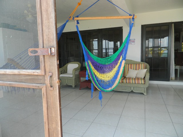 La Hacienda Apartments are located about a mile and a half south of town. Hacienda is a 1bed/2bth super spacious 2nd floor corner unit. dock, pool quiet and safe. It is 800sq ft , fully furnished, air conditioning, ceiling fans, wireless connection, cable. Potential for second bedroom as well as for sale lease option to buy. $600 usd, electric runs about $200 bzd if air conditioning is used a lot and water $50 bzd.