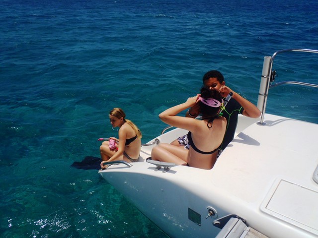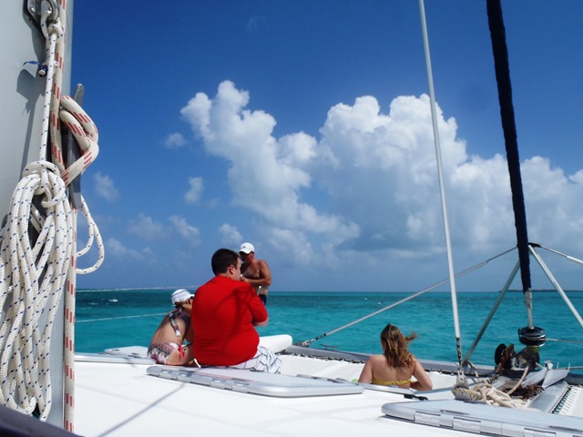 My next adventure came in the form of a last minute invitation to go sailing. That is the fun part of island life, it is easy to be spontaneous. I got lucky that Shirlee was in charge of her friend Jeff’s guest list on one of the Beymer boats Ecologic Cats (now in Roatan). After all who wouldn’t feel lucky drinking a fresh Pina colada (I’m still an alcohol drinking virgin) and some tasty treats? Their sweet habanero sauce on cream cheese is always a crowd favorite.