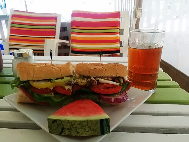 For this aquatic road trip, we headed a bit past Hol Chan to a snorkeling spot known as Coral Gardens. When the snorkelers were done we set sail for Caye Caulker and lunch. Even though I opted to relax on the boat over going in the water, I was famished. So Kendall’s idea of a giant sandwich at Paradiso sounded good to me and it tasted great. We got in a bit of a walk around the island after lunch and it was not long before we found everyone else had picked up a hitchhiking Cowboy Doug who had flown into Caye Caulker on a Tropic Air island hopper and was ready to catch a sunset sail with us back to Ambergris Caye.