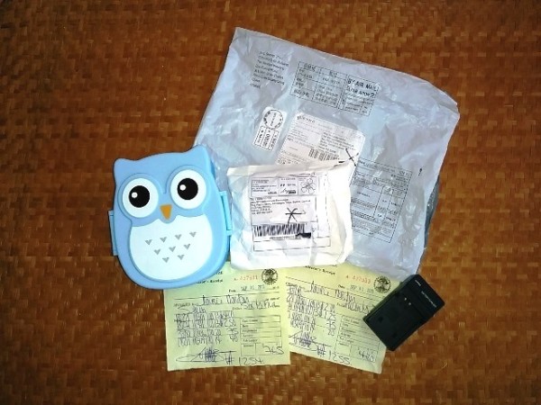As for customs and duty, the post office has their official “blue book” of pricing. I have still found no real rhyme or reason for the customs prices on my stuff. The first picture is a good example of that. I got charged $7.65 BZD for my plastic owl bento box from Hong Kong (cost $5.62 BZD) and only $4.20 BZD for my Olympus Stylus Tough 8010 battery charger (cost $7.98 BZD). Reason for buying a new charger from China: King, our pool guy helped me work out that it was not a faulty wiring that made my old charger start acting up, it was because the inside had rusted.