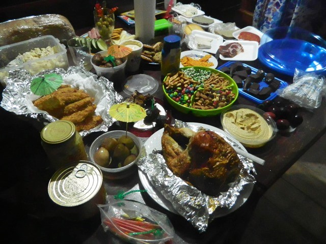 Dinner was meatballs with rice and beans but we opted to go have a bite to eat at a restaurant before our tour and then do a potluck pig out later. We had enough food and drinks to survive a famine 🙂 After we ate we all agreed a short nap time was in order then everyone would meet up at our place and head off for the 7pm tour.