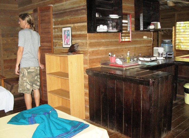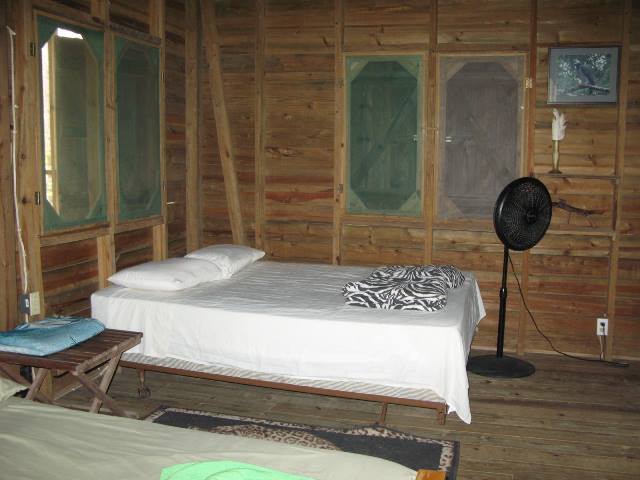 Cindy and Marie decided the couples would each get a pond house, I told he could Forrest bunk with us when we found out there was an open style 2 bedroom one. After paying we did a house tour. The three pond houses were all had a rustic cottage feel, ours was the perfect spot to host the party. The only thing that was missing was a non screened in viewing area like the smaller houses had. The layout was super cool though and we had loads of sleeping options. 2 double beds on one side and split with a half wall made up of Bathroom and beside it kitchen on the other side was 1 double bed and a single. Both sleeping areas had their own bathroom and veranda entrance. I almost forgot rooms also came with ceiling fans and standing fans.