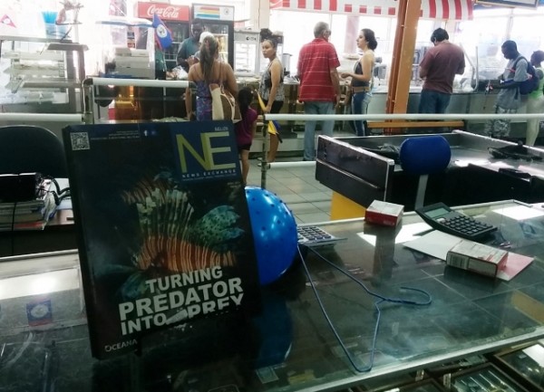 My big planned purchase was a mid-sized travel bag to use this week when we go to San Ignacio and Belmopan. I saw a backpack at Simon Quan for $79.99 BZD but was not ready to pull the trigger yet. Thankfully I waited as I saw the same Everest one at Brodies in a color I liked better. The only issue was it was $90 BZD. I took the bag to the upstairs counter and asked if there were any sales happening. I explained to the clerk that I had seen the same one cheaper at Simon’s store so he was nice enough to give me 10% discount. Because of his generosity, I decided to buy a dice game called Bones. I figured we can give it a try this week. On our way out, I also bought a copy of Belize News Exchange magazine. It caught my eye because Oceana and a big lionfish were on the cover.