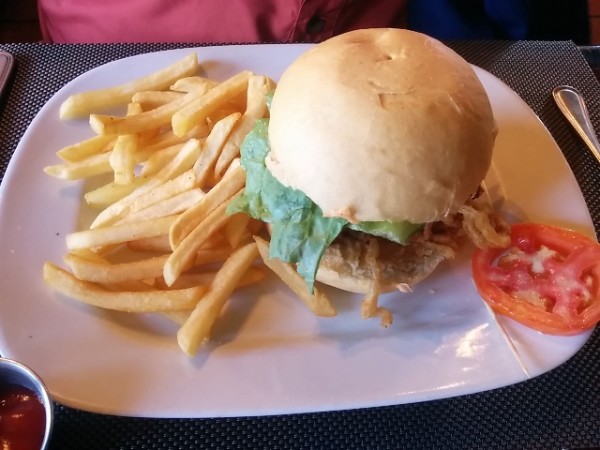 My Johnnycake and fruit salad had long worn off so after we finished shopping, it was time for lunch at the Riverside Tavern. If you have eaten there already, I do not have to tell you the food and service was great. If you haven’t … What are you waiting for? Needing hydration we both went for a bottle of water and a lime juice – great sweet-tart balance. I went for the Asian chicken salad with a side of garlic mashed potatoes; Kendall opted for habanero bacon burger. We were both full but wanted a sweet treat so we split a wedge of key lime.