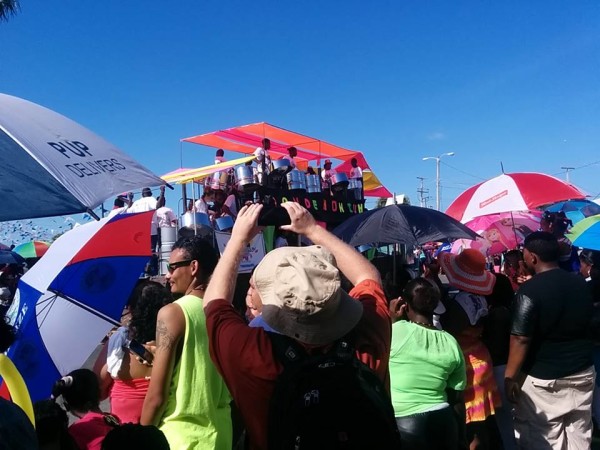 Last but not least we watched the big Carnival Parade. It was not a far walk from the Riverside and we knew we were heading the right way by following the crowd. We could hear the parade long before we could see it. I figured it was going to be busy but boy was it packed. Wall to wall people and so many smart ones had their umbrellas to protect them from the sun. Next time I will pack an umbrella hat. There was a guy in the parade who was giving some out but he, unfortunately, did not hear my mental telepathy and walked to the other side of the crowd 🙂