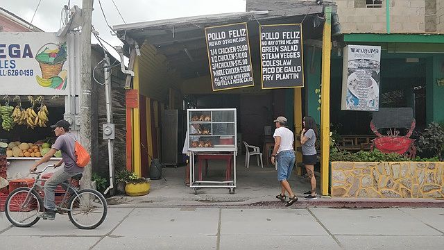 At $10 their panko breaded chicken fingers and fries are yummy if you want to make that more tropical they do shrimp too. This one is just off the Back Street on the south side of the old football field. It is fun to eat at their second story bar to watch the world meander by. While it does not fit the cheap category, it is still not expensive ($20 and up) and worth mentioning, this is a must do spot if you like ceviche.