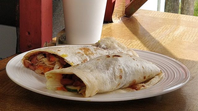 $5 vegetarian or chicken burrito is a good size for the price. There is no sign but you will know this Back Street spot as it is brown and green, and has barstools out front and a picnic table to the left side. It is common for smaller restaurants like this one to break in the afternoon and then re-open for dinner.