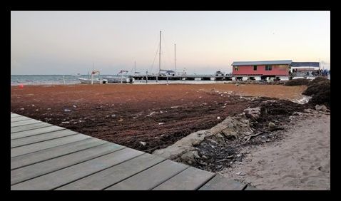 My friend Kendall in Honduras reported they’ve got some but it is not as bad since it doesn’t tend to hit Roatan Island directly. It just floats past. Their main tourist beaches face west so no sargasso issues there. He also mentioned that his buddy in Playa del Carmen told him they were moving it out with construction front loaders. I was not surprised to hear that.