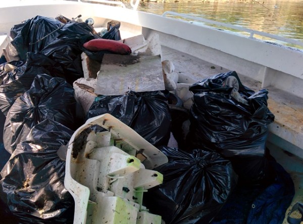 The garbage we found included way too many motor oil containers; tires, toys, various plastic bottles, lots of styrofoam, fishing line with hooks, rope, metal, PVC pipe, spray cans, metal bike wheel frame, pillow, shoes, coolers, buckets, plastic bags and more.