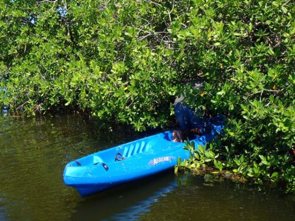 Not long after we set out we realized to make our work easier we needed to go back and get 2 kayaks as they would be able to get to some of the garbage what was buried deeper in the mangroves. This worked well and so did the two gaffs that Shelly brought. It was agreed more gaffs were needed for next year and a rake or two. We also brainstormed concepts for some sort of a mid-size framed net on a pole would be helpful for scooping.