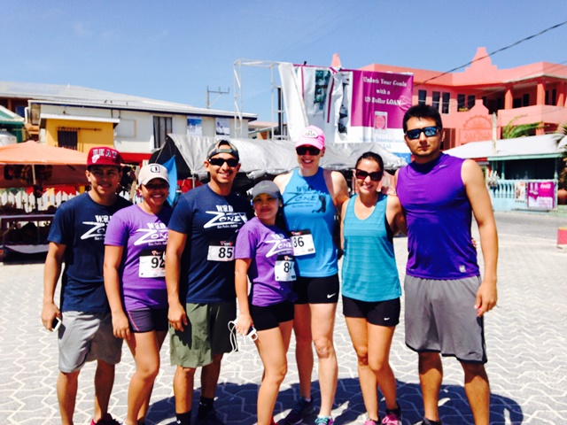 For the guys, Eric Donis ran the race in 17 minutes and took first place followed by Kent Bob Gabourel in second place and Jonathan Andino placed third. Well done, especially in that heat. The top three girls were, Amy Requena on first, Luisana Guerrero for second and Jennifer Maher. It does not surprise me that a couple of well known “boys” finished the race with a little help from their friends (Belikin and hitching rides) 🙂