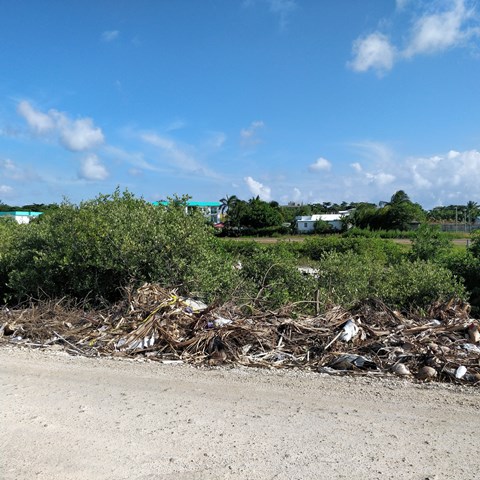 The two pictures above are fitting because they immediately bounced me to my garbage stash for 2017. The picture below was on October 10th, 2017 taken from the roof of the Fitness Club. The picture above to the left, the white building, was that very roof where I took the picture below. Not knowing that I would be helping water test that very area after the big Belize Tourism Industry Association San Pedro Chapter clean-up campaign. Amazing how the story unfolds.