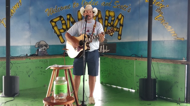 Palapa is always a great place to catch events, there is lots of room and great people watching. This was the second time I had heard Roy play there and knew he was worth seeing again. It was fun seeing people outside floating in the tubes and diving off the floating dock while enjoying the show. Perfect island-style way to spend a Friday afternoon.