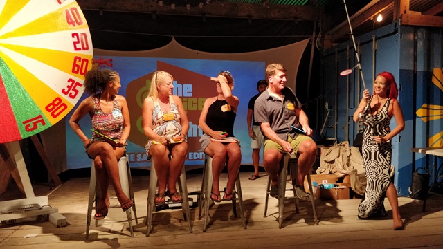 Annual lobsterfesters Terri and Tyler had given us advance warning to get there early and they were right on the money with that advice. We showed up a good hour early to the event and it was already packed. I lost track of how many friends said this was the most packed Lobster Crawl event yet. I was not surprised, the Truck Stop crew know how to entertain always draw a full house. This time it was a Belize version of “The Price is Right”.