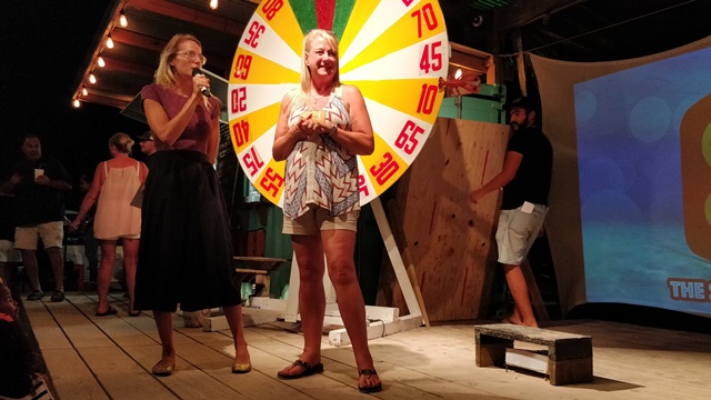 The best part of this event was that I knew a few people at that one and was able to give my friend Denise an assist for the correct pricing at the silent auction on the snorkel masks which ended up leading her to go for the win on a sunset cruise for two on YOLO courtesy of Island Dream Tours. Our other friend Karen B made sure she had enough rubber chickens for the 3 of us to cause a commotion and costumed up Denise in hopes of her getting on stage.