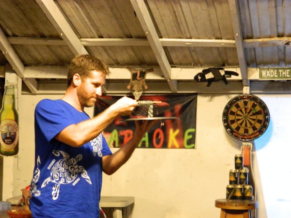 Larry Hasbrouck from Colorado went on to take the win for Grand Champion and walked away with a $10 roadkill gift certificate and Caye Coffee flavored Rum cake made by Wade the Gringo. Runner-up Roman won a $10 certificate and a Roadkill Koozie.