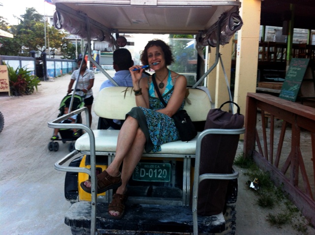 As for packing for this trip, I think the only thing I really didn’t account for was the rain. I ended up getting a rain poncho in a local store. If you go by golf cart, you get a lot of rain sliding off the golf cart roof as well as splash up from the road and just plain rain getting in the cart….so an umbrella won’t do. But as this was apparently an anomaly int the usual DRY season, I am sure, that a rain poncho won’t be necessary next time. (I might bring it just in case though.) Really, good sturdy walking sandals are a must. And the dress on Ambergris Caye is definitely casual. You don’t really need much in the way of clothing. If it does rain, however, the island is very humid and things take a longer time to dry so quick dry clothing is an asset for sure. One thing I would not travel without would be my sarong. I used it as a blanket, a robe, a skirt, a dress and a cover up and it dries really fast.
