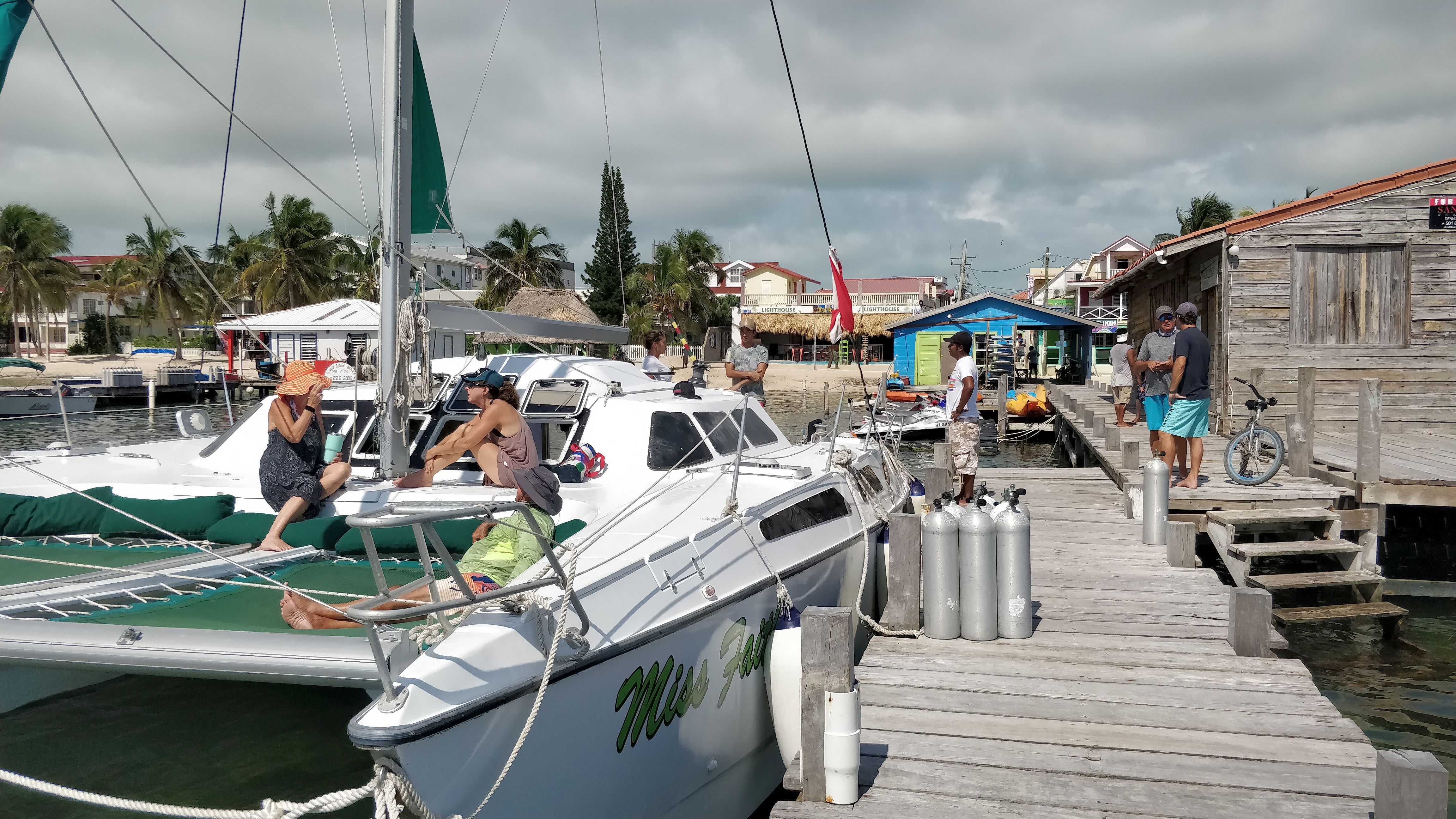 My visiting company Heather and I won the lottery and got on the list to be in a 12 person focus group for a new 24-hour catamaran camping trip to Goff’s Caye. Xsite Tour owners Tammy and Neff wanted to test drive their upcoming new tour and get a feel for timing and logistics. It was perfect because Heather had been wanting to go on a sailing trip while here, but couldn’t do a three day one because she has back issues. So when Tammy said she was welcome to join the test run for their overnight tour, we were both excited.