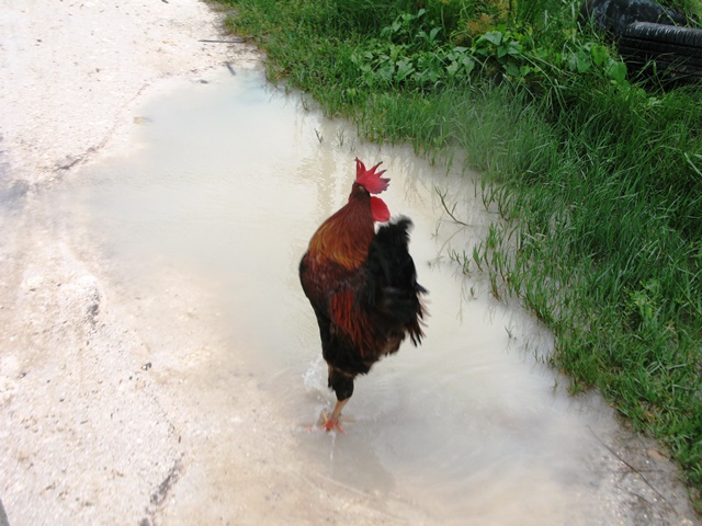 When we drove through San Pedrito, we noticed lots of roosters and chickens out and about. They were tired of being cooped in and taking advantage of the break in the rain.