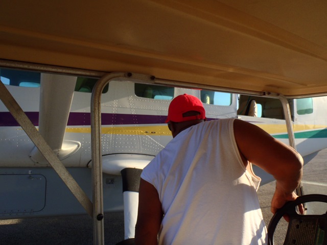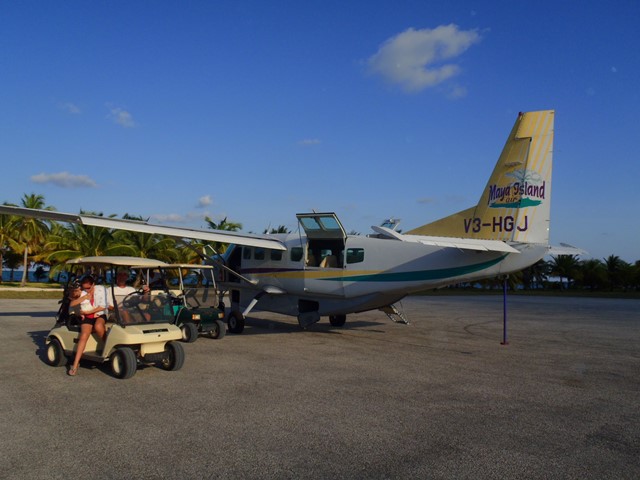 As the plane landed the first thing I noticed was now nice and wide the runway was. I was later told by a few people that is the best runway in Belize and I have to agree. The plane kept going till the end of the runway then turned off to the right parking area where Evan was waiting meet us with golf carts.