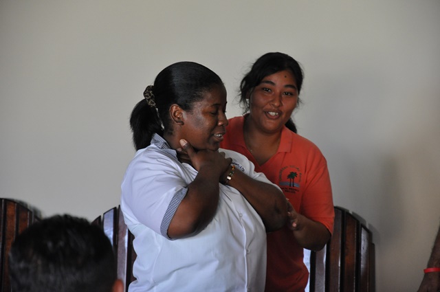 Black Orchid Restaurant in San Pedro would like to thank the Belize Red Cross and all of the Volunteers who took time from their schedules to train our staff and others in the practice of CPR. The class was educational, informative and we even had a little fun. We all feel more confident about our skills in responding to an emergency related to choking, seizure and heart failure. We would be happy to host another training in the future. [All First Aid pics courtesy of Judy Ann Horton]