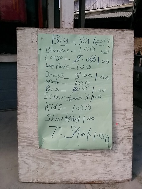 In Belize, they get bales of clothing shipped in on the mainland. My friend Dennis has friends who imports the bales and then has a sorting station to sell by the pound. As the week goes on their pricing goes down. On Ambergris Caye, smaller bales get delivered to the shops on Saturday’s and often the stores are busy with shoppers wanting to get first pick as soon as the goods are put out.
