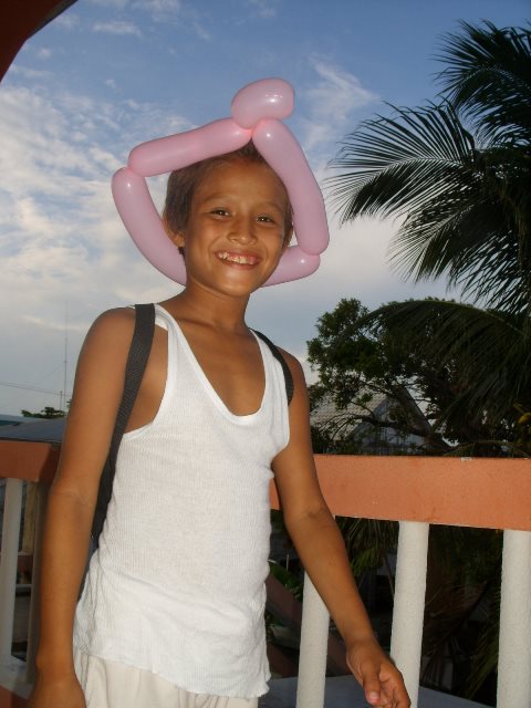 Alex just stopped by for homework help, he had asked me to print something on the stages of the butterfly the other day for extra credit and so he came by to pick it up today. After we got that out of the way, he tested out my balloon blower and made some fun balloon shapes.